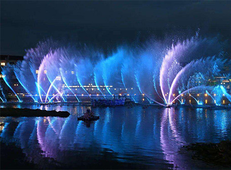 激光水幕投影是集藝術、娛樂、趣味、廣告、宣傳于一體的大型激光藝術演示形式之一。水幕采用高壓水泵和特制的噴頭將水 自下而上高速噴出,使水霧化,從而形成透明的、具有一定空間厚度感的立體水膜。