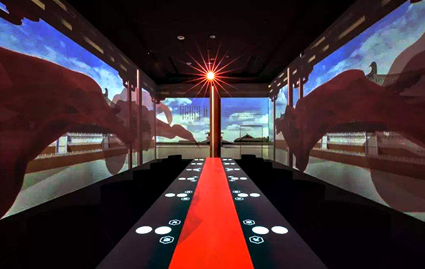 全息沉浸式投影餐廳指的是完全沉浸式投影型虛擬現實系統。由四個幾米高的平面組成的立方體屏幕包圍觀眾。設置在立方體外圍的四個投影裝置一起投影在立方體的投影型平面上。